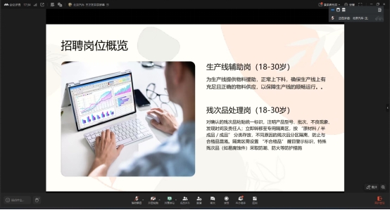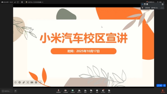 为精准对接行业需求,帮助学子搭建优质就业桥梁,明晰职业发展方向,10月17日下午,机电学院组织的小米汽车有限公司(北京)校园专场宣讲会在腾讯会议上召开。汽车服务工程专业的毕业生踊跃参与,学习交流氛围十分浓厚。