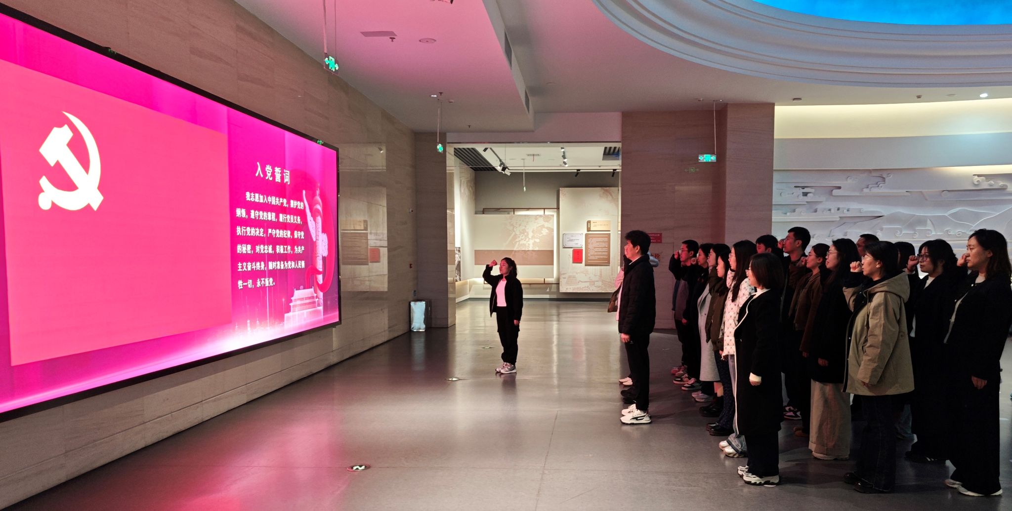 全体党员在杨靖宇将军纪念馆英雄雕像前整齐列队,面向鲜红的中国共产党党旗,举起右拳,重温了入党誓词。“我志愿加入中国共产党,拥护党的纲领,遵守党的章程……”铿锵有力的誓言回荡在纪念馆上空,表达了机电学院党员同志们坚守初心、担当使命的坚定决心和信念。