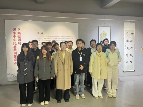 为丰富师生的校园精神生活,提升爱国情怀,深化民族团结意识,11月11日下午,机电学院组织师生代表到艺术大楼305展厅参观“铸牢中华民族共同体意识”书画摄影展。