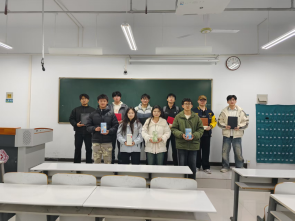 竞赛结束后,获奖同学们手持奖品,在教室内整齐列队合影留念,一张张青春的脸庞上满是收获的喜悦与自豪,定格下此次知识竞赛的美好瞬间。